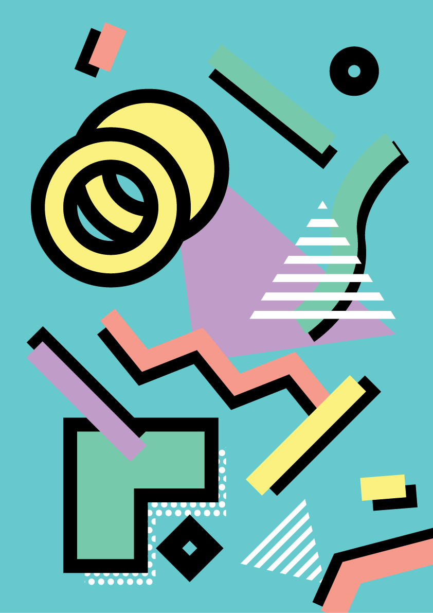 A minimalist geometric exploration of shapes and patterns prevalent in 1980's style, created with a muted pastel colour palette.